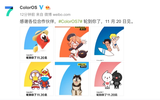 随着 ColorOS 7 发布日期的临近,微博上关于 ColorOS 7 的讨论热度也越来越高,已有不少网友参与由 ColorOS 官微发起的 #一起来拍7# 活动,各种脑洞大开的「7」让人不由得莞尔,感叹 ColorOS 粉丝的创造力与观察力真的是太棒了。今天微博上突然出现十多家品牌蓝V 集体发布海报,一同期待 ColorOS 7 的到来,由此可见 ColorOS 7 的呼声之高。