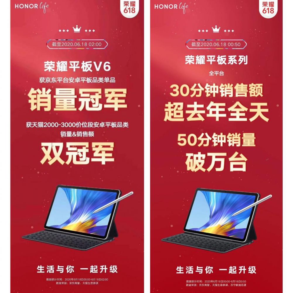 随着618活动开启,荣耀平板V6在京东、天猫等平台迅速登上了人气宝座。目前荣耀平板V6已有6GB+64GB和6GB+128GB两款Wi-Fi版可供选择,售价分别为2199元、2499元。另外还有5G版6GB+128GB售价3199元,8GB+256GB款(含键盘)售价3999元,将在7月开售。