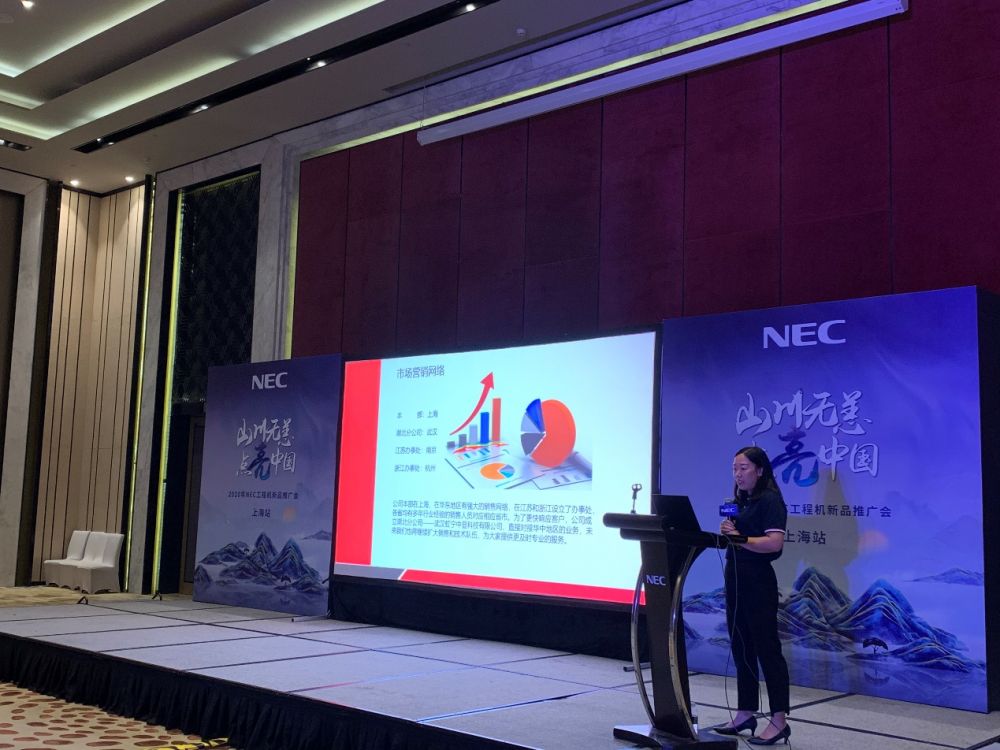 推广会上,首先由 NEC工程投影机全国销售总监谭慧菊女士 发表了精彩讲话。作为行业的领跑者,NEC从1979年开始就一直致力于显示产品的研发与生产,特别是根据工程领域用户需求,不断推出适合市场的新产品。多年来,NEC在国内工程投影市场占有率一直名列前茅,取得了可喜的成绩。放眼当下,NEC工程投影机将与 上海虹宁信息技术有限公司 建立深层次合作,共同创造更广阔市场。