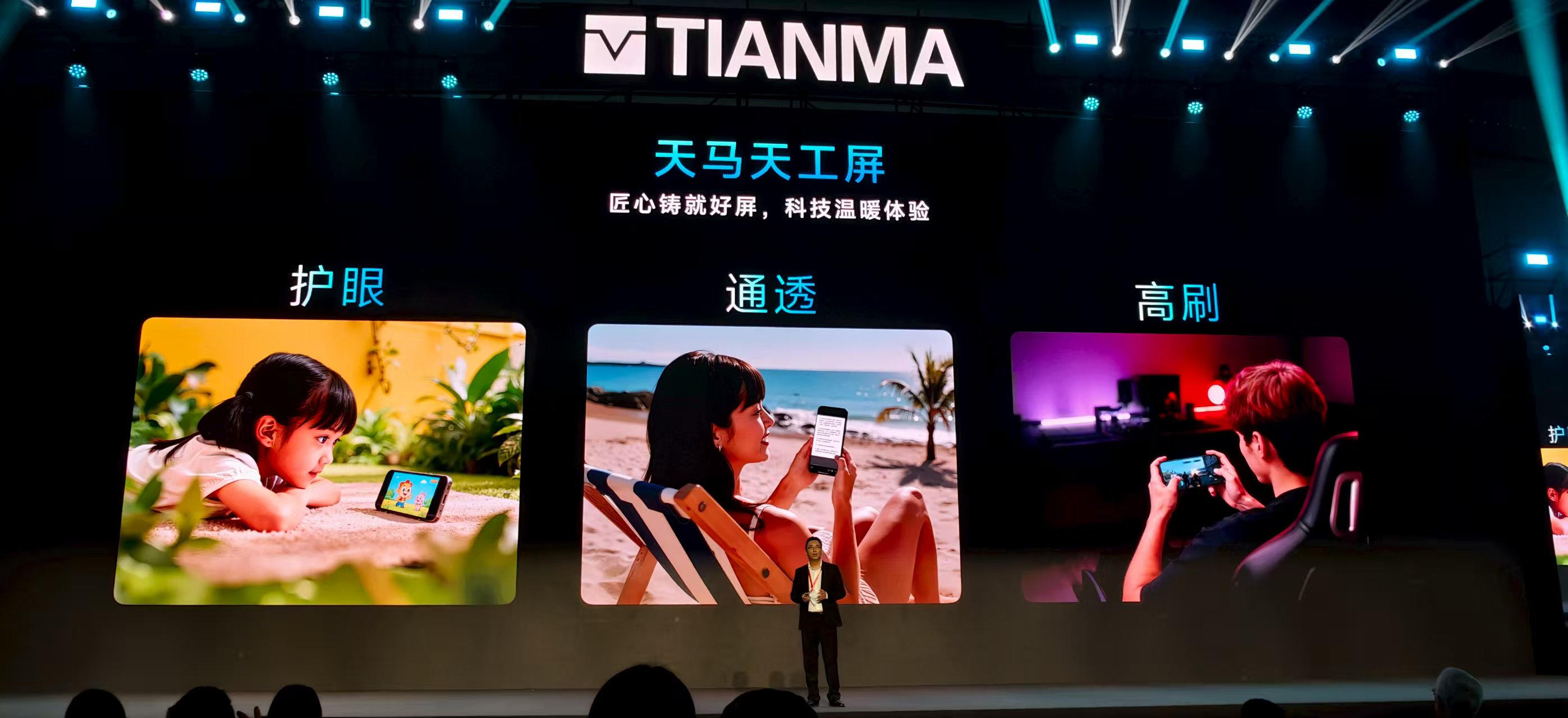在发布会上,天马正式官宣了第一代天工屏的三个核心特点:护眼、通透、高刷,每个特性背后都包含了天马对消费需求的深入洞察和诸多硬科技的突破。
