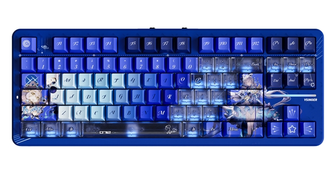 主题键帽:采用高纯度PBT材质搭配热升华工艺,确保图案历久弥新。ESC键、空格键、Enter键等大键位上,精心绘制了洛天依的形象。