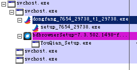 木马通过“正常”位置释放“正常软件”并注册开机启动项的方式,实现开机自启动。启动后,注入系统进程,隐藏自身工作模块,绕开常规杀毒软件的检测。 0x05 作恶 之后,该程序通过网盘下载东方输入法、QQ浏览器、金山毒霸、百度杀毒、百度卫士、百度浏览器、火绒在内的大批推广软件,并将安装结果打点回传。