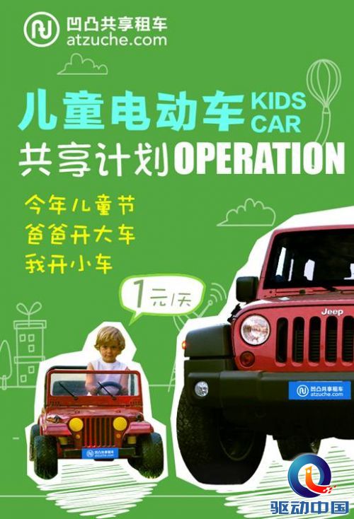 儿童节来临之际,凹凸共享租车宣布推出“儿童电动车共享计划”,招募闲置儿童电动车,以一元日租金共享出租,这是凹凸共享租车首次将共享领域延伸到儿童市场。
