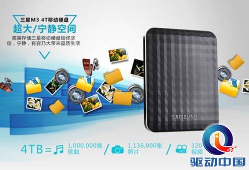 USB3.0智能电源管理系统还会在硬盘暂停工作5分钟之后,进入低电量的“休眠模式”以降低功耗延长硬盘内部马达的使用寿命,随着用户再次开启电脑三星M3移动硬盘将从“休眠模式”中被唤醒,持续巅峰的数据传输性能。 三星M3 Portable内部采用希捷Spinpoint M10P 4TB硬盘,通过在一个硬盘内封装5碟的方法,单碟容量800GB组成目前单硬盘4TB的存储空间,目前市场上大多数4TB硬盘都是通过双硬盘组RAID的方式实现容量的堆叠,如果其中一块硬盘损坏不仅实际存储容量将减半,而且还将损害到你保存的珍贵数据。三星M3 Portable采用单硬盘4TB容量搭配原生USB3.0接口能最大程度的减少性能损耗,给提供一个高性能的移动数据存储平台。