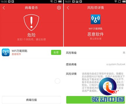 (图:腾讯手机管家查杀伪装成WiFi万能钥匙的木马病毒) 伪装木马病毒具三大特征 据腾讯手机管家安全专家分析,该木马病毒存在三大特征: 首先,伪装性极强。该木马病毒被二次打包在WiFi万能钥匙的APK安装包中,用户下载安装后生成的图标与正版WiFi万能钥匙完全一致,用户难以发现手机中毒。 其次,私自订购SP业务。通过后台私自发送短信的方式,订购SP业务,实施扣费。而且还会删除订购短信,屏蔽回执短信,让扣费在不知不觉中进行。 再次,感染用户多。据腾讯手机管家监测,该木马病毒已经感染数十万用户,而且受害人数还在持续增加中。 腾讯手机管家建议正规渠道下载应用 对于该木马病毒,腾讯手机管家建议用户下载手机应用的时候从具有安全检测功能的电子市场下载,比如,应用宝等。从手机论坛下载应用十分危险,因为这些应用未经过任何安全检测。 其次,要安装腾讯手机管家等安全软件。通过安装安全软件,当用户下载手机应用后,安全软件会立即对安装包进行扫描,发现木马病毒会立即提醒清除。此外,养成通过手机安全软件定期查杀病毒的习惯,也有助于防范各类手机木马病毒。