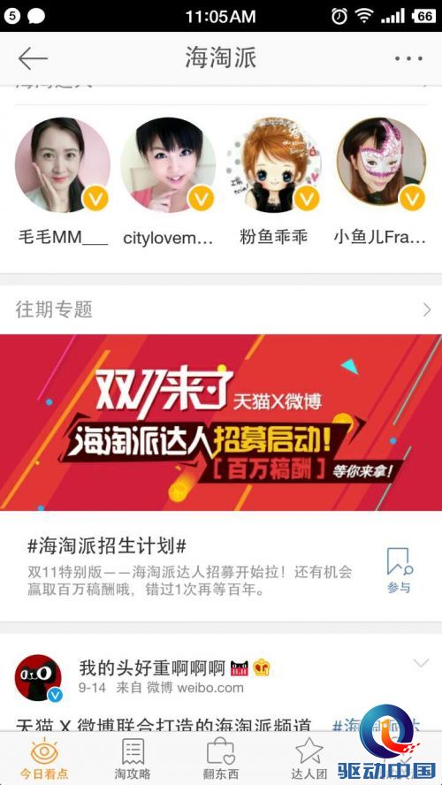 (微博“海淘派”频道) 除了利用微博上的明星资源之外,天猫还和微博合作打造了海淘派频道。双方通过和海淘达人签约的方式聚拢了一大批优质内容生产者。这些人不仅拥有很高的人气,帮助双方聚合了大量粉丝,同时也为双平台产生了大量优质内容。 此次天猫在双11取得的巨大成功离不开在微博上的推广,微博不仅是一个拥有2亿多月活跃用户的巨大平台,更重要的是微博的社交属性能为电商营造更多的购物场景。通过双方的合作产生的化学反应,不仅彰显出社交媒体的营销价值,同时也体现出社交电商的广阔前景。