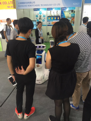 在上海的中国国际文具及办公用品展览会上,许多文体类的专业观众第一次亲身体验了与机器人的人机对话。 小螺机器人的语音对话分为“闲聊”和专业引导两部分。“闲聊”即为开放式聊天,小螺依靠互联网信息与观众天马行空的唠嗑,虽无法与科幻片中的智能机器人媲美,但也不时有惊艳之举。一位上海的观众迎面问道:上海的房价还会涨吗?小螺面露尴尬,无奈的说:我不知道。完了,我要穿帮了。随后,听到现场观众呵呵的笑声,他又说:你的笑脸是我最想珍藏的画面。憨态可掬的表情加上机智的语言让现场观众连连点头。 作为一款商业机器人,专业语音引导是完整的客户解决方案的基础。小螺为客户提供专业的软件定制开发以及根据客户信息定制的完善的场景词库。除此之外,小螺机器人在展会现场也为观众演示了,智能导航、避障、舞蹈笑话等功能。现场观众在感叹智能机器人时代真的到来了的同时,也纷纷留下联系方式希望与小螺有更多商业合作。
