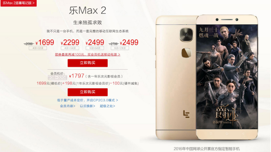 目前,乐Pro3和乐Max2两款机型都在热销当中,乐Pro3是乐视移动最新推出的旗舰机型搭载了骁龙821芯片,在乐视商城、天猫、京东及线下体验店均可购买。同时,乐Max2顶配版搭载了骁龙820处理器及6GB+128GB存储组合,直降300售价2499,并赠送运动蓝牙耳机,可谓是同配置中售价最低。在乐视商城、京东、天猫选购,不过活动截止至15日,感兴趣的朋友可要抓紧了。