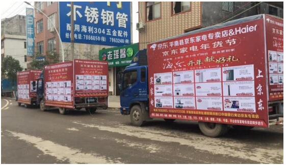 不要质疑“现在农村买家电都这么潮啦?”“置办年货都这么大手笔啦?”农村朋友们的回答是“当然了!” 你可能还不知道,自打京东家电实行渠道下沉政策,开始深入布局各级城镇农村市场,并融合了“线下体验+线上购买”的无界零售模式后,家电网购早已成了全国各地消费者的权利和福利。现在京东家电已经覆盖2.5万个乡镇、50多万个行政村,累计为千万农村家庭解决了购买家电困难的问题。 无论你在哪都能通过京东家电专卖店和京东帮服务店享受到家电网购的便捷和京东小哥风雨无阻的送货上门服务,以及高效率的售后服务……京东家电在全流程解决着农村消费者曾经在家电网购未普及时购买家电过程中碰到过的“价格高、品类少、不送货、安装慢、退货难”等问题,实实在在的从日常上提高了农村消费者的生活质量! 有多贴近生活?看这深入程度,光是简单粗暴的京东红大广告就已经刷屏了,哦不,是刷墙了: