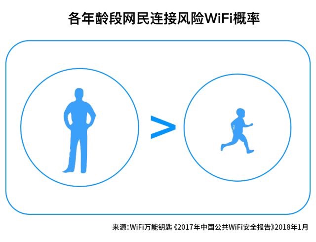 以上网人群的年龄划分,青壮年更易连接风险WiFi,低龄网民连接风险WiFi概率最低。