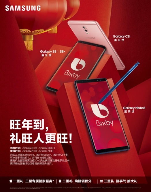 三星Note8同样采用了后置双摄像头,非凸起式的设计使得背部整体感更强。功能上,三星Note8搭载1200万像素双摄像头,采用长焦+广角的双摄解决方案,两颗摄像头均搭载全像素双核对焦以及OIS光学防抖功能,从硬件以及参数上来看有着相当强悍拍照表现,并且虚化程度可调节,提升拍照趣味性。 对比下来,其实三星Note8除了在细微的贴心功能上更全面外,与iPhone X整体表现差异并不十分巨大,此外,三星在设计、全面屏、交互等方面的创新表现超过苹果给人们留下了深刻的印象。 值此在中国传统佳节到来之际,三星手机更为广大中国用户带来了诚意十足的新春购机享好礼活动。2018年2月1日-2月28日,购买三星Galaxy S8|S8+、Galaxy Note8、Galaxy C8手机可申领多项购机好礼。其中,三星Galaxy S8|S8+ 、Galaxy Note8 享受三星为您提供的专属管家服务,包括"6个月优惠换屏服务"、电池性能检测及优化、5折电池更换服务、5折S Pen优惠购买(Note8独享)、VIP专属热线等专业级贴心服务。活动期间,购买指定手机即可申领三星会员俱乐部积分(限量10万份),其中购买三星Galaxy Note8赠送价值188元三星积分,购买Galaxy S8|S8+赠送价值88元三星积分,购买Galaxy C8赠送价值58元三星积分。除此之外,参与购机的用户还可参与幸运抽奖活动,有机会赢取最高价值2000元的携程任我行电子卡(10份),以及其他三星原装配件奖项(2000份),具体活动信息可登陆三星手机官网了解。