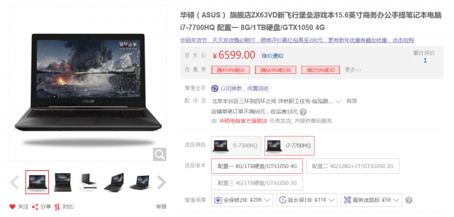 华硕飞行堡垒ZX63VD京东商城购买链接:https://item.jd.com/20614311800.html 性能强劲 抢占先机