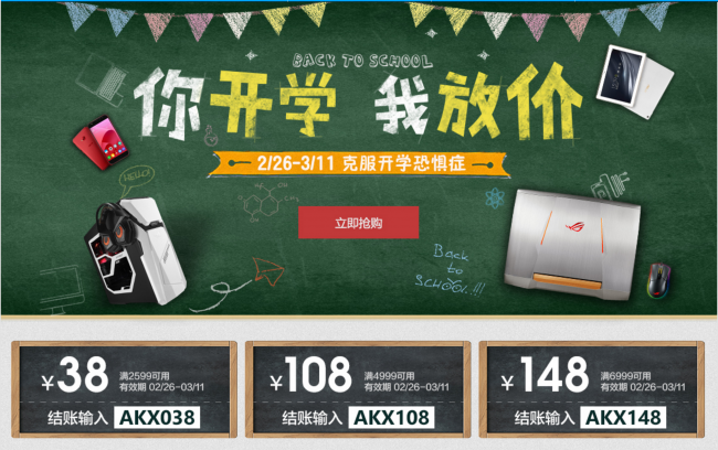 又到开学季,如果想趁着新学期换一台新的笔记本电脑,那么一定要多多关注华硕商城。自2月26日至3月11日,华硕商城重磅推出“你开学,我放价”促销活动,并针对学生朋友推出两款特价产品,超轻薄的华硕灵耀U4100UQ与全能型的华硕新顽石5代电竞本FL8000UN。