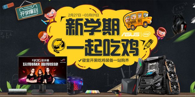 华硕主板此次于天猫商城进行的开学季促销活动时间为2月27号至3月1号。在这里,华硕诸多热销主板单品以及板U套装均拥有劲爆的开学价,令大家不容错过! 选择新装备 开启新学期