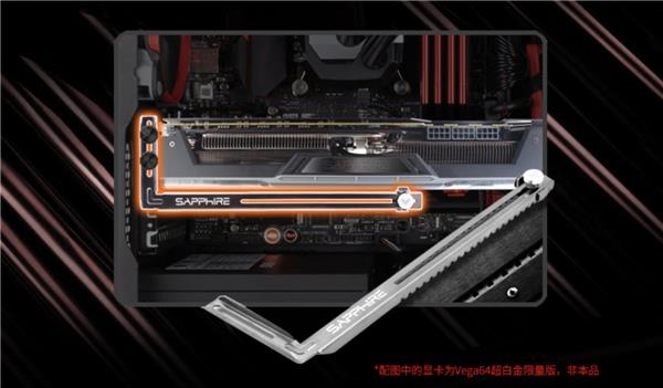 装配的易用性也有非常值得一提的亮点,蓝宝石VEGA56超白金配备了NitroGear显卡托架,帮助显卡稳定在正确的位置,避免了插槽损坏或PCB弯折等问题。除此之外,显卡风扇使用的快拆技术也非常省心,仅需拧下一颗螺丝就可以拆除风扇,更换或除尘都很方便。