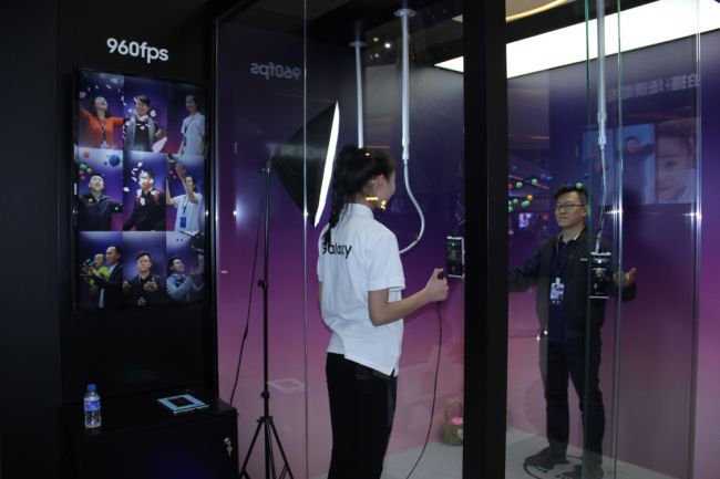 (体验馆产品图) 体验馆内特设了拍照体验区,在感叹领先科技带来神奇体验的同时,也让参观者们对Galaxy S9的拍照效果有了更加真切的体验。在凝时拍摄体验区,消费者们纷纷举起手机抓拍飞扬的彩带,将0.2秒的精彩瞬间转变为长度6秒的超慢动作视频。而这正是由于Galaxy S9|S9+摄像头的全方位提升,不仅配备超疾速全双核传感器,同时还采用了拍摄专用的独立动态存储器,可以实现每秒捕捉960帧画面。