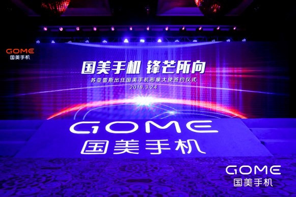 2018年中国杯国际足球锦标赛期间,乌拉圭足球名将路易斯·阿尔贝托·苏亚雷斯现身南宁,正式签约国美手机,出任其形象大使。在签约仪式上,苏亚雷斯与国美通讯董事长宋林林交换了礼物。宋林林董事长将一台精灵蓝色国美U7手机赠送给苏亚雷斯,苏亚雷斯则将亲笔签名的足球赠给宋林林董事长作为回礼。双方都表示,对此次合作充满信心。