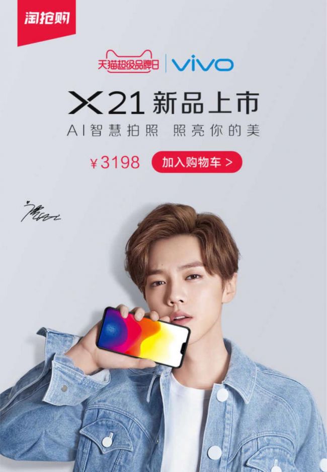 淘抢购火热围观中 vivo X21多项黑科技加身 引爆春季手机市场 vivo X21是vivo对于全面屏的再次探索,配备了一块6.28英寸的Super AMOLED屏幕,宽度只有7.37mm,屏占比高达90.3%,让用户享受到更宽广的视野。相机方面,搭载2x1200万像素(2400万感光单元)摄像头,全像素双核极速对焦。带来了AI逆光拍照和AI美颜,拍照效果更佳惊艳。整机配备了骁龙660多核神经网络加速芯片,再加上6+128GB的超大内存组合,长久使用也不必担心卡顿问题。可以说在硬件、软件各方面都堪称旗舰。