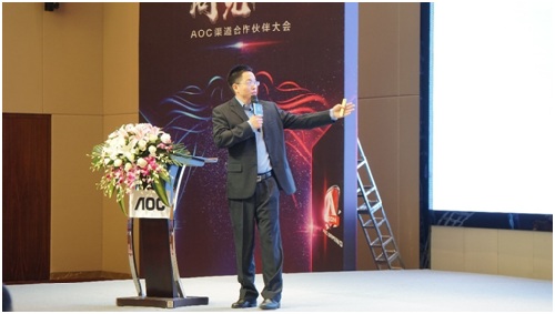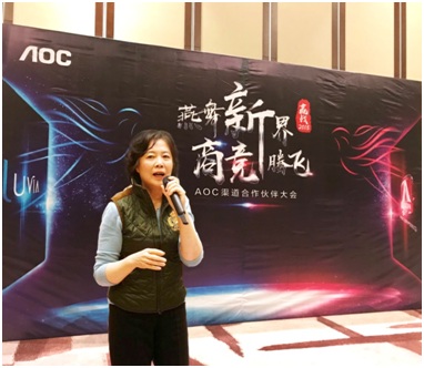 冠捷集团副总裁兼OBM电视BU全球总经理周伟君女士致祝酒辞 同时,为表彰2017年各渠道合作伙伴在电竞、商务等领域作出的突出贡献,会上,AOC颁发了八十余个奖项,未来将持续携手渠道合作伙伴同舟破浪、共赢未来!