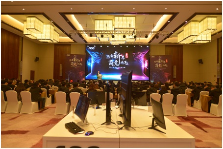 会议现场领导启动“蓄能总动员”仪式 在答谢晚宴上,冠捷集团副总裁兼OBM电视BU全球总经理周伟君女士致祝酒辞,她对渠道合作伙伴十余年来的携手共进、共赢表示诚挚的感谢,对“AOC人”的专业、专注倍感欣慰,对AOC的未来发展抱有很高的期待。周总的发言收获了在场渠道合作伙伴及“AOC人”的热烈掌声,气氛达到高潮。