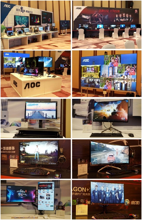 AOC视讯精品展区展示了丰富的新品 蓄能总动员:同心同力·赢战2018 正如此次会议中反复提及的,自2008年“全球金融危机”以来,视讯行业的高速成长期就结束了,随之而来的是持续多年的颓势。而就在此背景下,AOC却取得了八度蝉联中国显示器市场销量、市占率双料冠军的成绩,靠的是创新、创变的企业顶层设计,也是所有渠道合作伙伴凝心聚力释放的巨大能量。 此次会上,AOC精心安排了“蓄能总动员”互动仪式,特邀冠捷集团资深副总裁兼OBM全球总经理段振华、冠捷集团副总裁兼OBM显示器BU全球总经理Nico、冠捷集团副总裁兼OBM电视BU全球总经理周伟君、艾德蒙科技总经理阎立东等四位领导现场点亮仪式。点亮后,所有渠道合作伙伴的头像共同形成了“燕舞新界,商竞腾飞”八个大字,象征着未来在渠道合作伙伴的凝心聚力下,AOC将在商务、电竞两大细分市场取得斐然成绩!