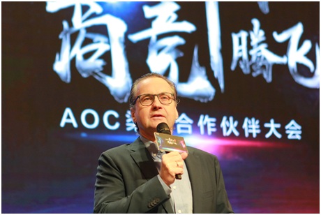 冠捷集团资深副总裁兼OBM全球总经理段振华先生作开场致辞 与此同时,段振华先生现场解读了全球化视野下AOC面临的发展机遇,一方面,“一带一路”倡议与智慧城市建设将会对政府采购和消费需求形成巨大拉力,为商显市场带来机会;另一方面,电竞产业的崛起为AOC提供了蓝海市场;再者,“新零售”等新概念的崛起也为传统品牌带来“创变”的巨大机遇,这些都将成为助力AOC逆势中加速飞行的驱动力,同时也是AOC开展“春燕行动”的源动力。最后,段振华先生表示,逆势中要勿忘初心,未来希望与所有的渠道合作伙伴携手同行、赢战2018。 值得特别指出的是,在全球化战略支撑下,AOC在国际市场上的表现颇为亮眼,尤其是在B2B、电竞、新零售等蓝海领域的布局已然结出硕果。对此,冠捷集团副总裁兼OBM显示器BU全球总经理 Nico现场分享了一组AOC全球市场业绩数据,2017年,AOC显示器欧洲、美洲市场份额分别达21%、17%,在亚太区、中东和非洲市场达13%;其中,电竞、商显、新零售三大领域发展迅猛,全球市场销量占比达34%。Nico表示,到2020年,三大蓝海领域销量占比将达61%,前景可期。