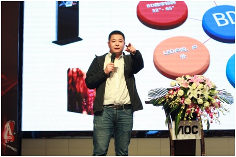 艾德蒙科技AOC电视总经理陆一乔分享TV全新渠道规划 最后,艾德蒙科技商务大屏项目经理彭玉虎先生现场分享了2018年商显的发展方向。他指出,未来AOC将以全屏类产品全面覆盖交互式智能商用、BD数字标牌、LED户内/户外、监视器、BD商用大屏等各领域,让AOC商显取得长足发展。
