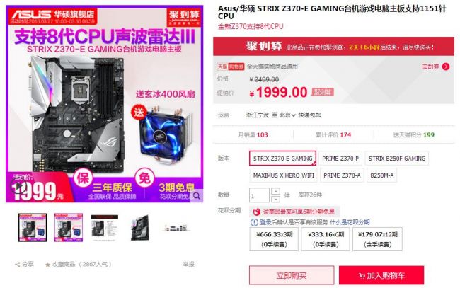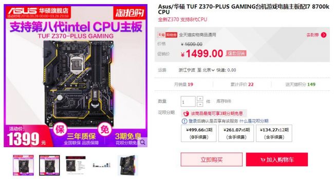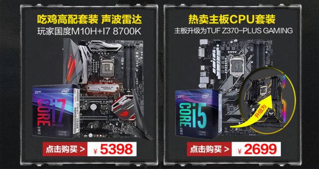 TUF Z370-PLUS GAMING主板是华硕最新推出的电竞特工系列主板,曾荣获2018年微型计算机315值得信赖产品奖。其采用TUF军规认证用料,秉承坚固耐用、持久稳定的精神,并将华硕日益精进的电竞黑科技也融入其中,性能上有着突出表现,而其平易近人的定位更是拉近了玩家与高性能电竞硬件的距离,为游戏玩家提供优秀的游戏体验品质。电竞音效方面,这款主板特别新增了DTS游戏音效定制技术,可为立体声耳机提供多声道环绕虚拟化。该功能让玩家可根据游戏类型,方便地将音效偏好设为航空模式(适合MOBA/RTS/策略/运动游戏),音景模式(适合 MMO/RPG/动作冒险/恐怖游戏)和战术模式(适合 FPS/潜入类游戏),从而带给吃鸡玩家更逼真、更震撼的游戏音效或更精准的声音定位。在网络性能方面,该主板配备了疾速Intel千兆网卡,并拥有Turbo LAN网络加速大师,支持cFosSpeed网络流量控制,可有效降低游戏延迟,助你畅快吃鸡!除了优秀的性能,TUF Z370-PLUS GAMING主板还拥有出众的外观设计,它不仅在PCB背面边缘设计了炫酷的AURA RGB电竞氛围灯,而且还支持AURA SYNC神光同步技术,能够助你打造出高颜值的吃鸡平台。 此次活动期间,TUF Z370-PLUS GAMING主板限时特惠价仅1399元。 板U套装 款款超值
