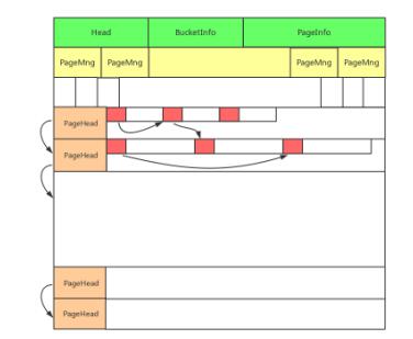 图3 数据哈希 对于单个Shard来说,最大可管理内存为8T,由于目前设备限制,实际最大可支持512G,因此集群版支持的容量范围为 [1G,512G] * 16384 = [16T,8P]。当然在实际应用中,还需考虑系统内部预留资源等因素,且Shard大小及Slot对应关系的规划也要视物理资源情况而定。 内存引擎设计,确定CKV+引擎 内存管理是内存数据库系统中非常重要的一环,在CKV+系统的设计阶段,对于引擎也是进行了大量的讨论与调研,根据我们的经验,同时吸纳了多种主流内存管理体系的优点,确定了当前CKV+的引擎方案。主要特点归纳如下: · 使用共享内存,方便升级或进程异常时快速恢复 · 基于共享内存实现了红黑树算法,在保证性能的前提下,兼容Redis中的Hash、Set、ZSet数据类型 · 使用多规格Block作为(最小的)数据存储单位,更加灵活同时内存空隙更小 · 使用经典的Page管理模式,优化了动态分配策略,提高了Page回收几率,降低内存碎片率 · 用户数据所依附的内部数据结构同样基于Page进行动态分配,减少内部预留空间的浪费