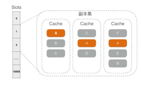 图2 Shard分布 每台Cache的内存被划分为若干Shard,无论是主从版还是集群版,用户的主或备数据可能落到任意Cache,分配策略支持跨机架、跨机房等。这样做的目的有: · 不再有单纯的热备设备,减少低负载设备比例,充分利用整个集群的网卡、CPU等资源 · 当一个或若干节点异常时,利用整个集群的能力进行容错(切换流量)与恢复(在不同节点重建备份),避免雪球效应 · 在分配时,将考虑现有设备主备Shard比例及负载,优化装箱算法,可是集群资源更加均衡 由于CKV+兼容Redis协议及各种使用场景,因此也区分了主从版与集群版。对于集群版来说,经过对比,数据哈希仍然采用了Pre-sharding的方式,如下图所示。