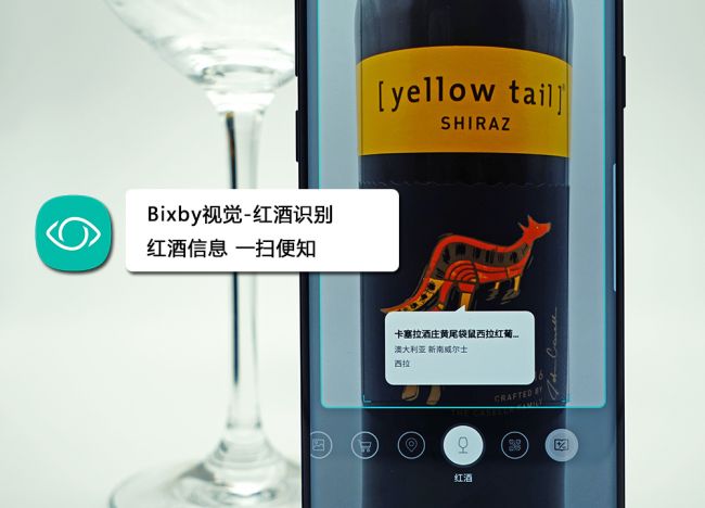 红酒识别:如果说Bixby视觉的翻译和购物功能足以让你感到惊艳,那么红酒标签识别则可以让你倍感贴心。对于必出现在西餐桌上的红酒,用户可用Bixby视觉对准红酒瓶上的标签进行识别。基于与酒咔嚓的合作,用户在扫描红酒标签后,Bixby视觉便会在屏幕上呈现关于这款红酒的更多信息,比如红酒名称,产地等。
