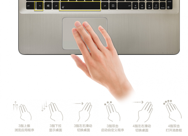 不仅如此,为避免学习、工作中,电脑高强度使用,机身发热的情况。华硕A580UR采用智能风扇控制,让掌托位置温度维持低于体温36℃以下,时刻保持出色运算能力和舒适使用体验。同时,还加入了多指触控操作,不管你是打字苦手,还是操作小白,通过触摸板不仅可以方便写入所需文字,还可以浏览应用程序,显示、切换桌面,启动自定义程序,打开消息框。