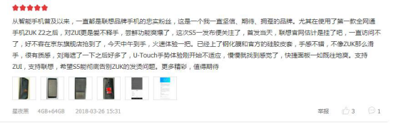 另一方面就是联想S5的系统流畅度了,ZUI的流畅基因让联想S5保持了轻盈的体积,再加上工程师们的不断优化和调整,指纹识别的不断的学习功能,让全面屏功能显得更加自如一些。当然,这些因素也都让消费者体会到联想S5的“轻”“薄”“快”特性。 l从联想S5,用户对于联想品牌高度认可 很多忠实的联想粉也是对于S5有很大的期待,从乐Phone到乐檬、从ZUK到联想S5,他们一路对于联想手机的支持和喜爱,也是对联想S5的不断肯定。无论是对于U-Touch喜爱还是对于ZUI的爱不释手,联想粉都拿到了自己喜爱的联想S5手机。