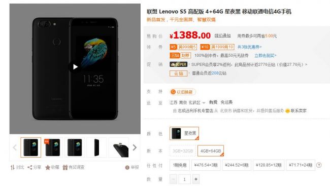 获市场溢价,联想S5成热门机型 众所周知在手机想要溢价一定要拿出自己的实力来,小米、华为等品牌都出现过此类的状况,但他们或多或少会有一些饥饿营销的因素在,而联想S5几乎是现货发售。原本4+64GB的联想S5已经在一些第三方商家店铺销售到了1388元。