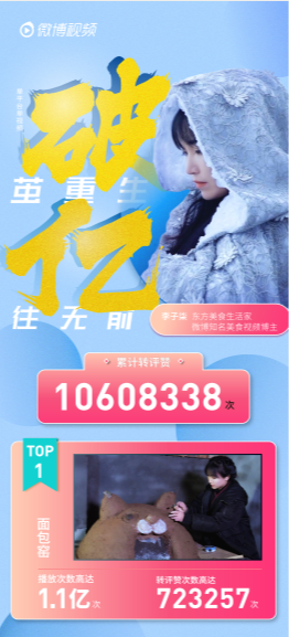 单集播放量破亿对一档节目来说意味着什么?就算是最火的纪录片,今年强势回归的《舌尖上的中国3》,爱奇艺全八期点击量也才1.1亿;而综艺方面,也就去年最火的综艺节目《中国有嘻哈》,以及今年拥有顶级流量加盟的《热血街舞团》,上线当天达到播放量破亿的数据……庞大的数据背后,是全中国最高水准的制作团队、流量明星和播放渠道共同努力的结果。 但是在网上,有一个人,单枪匹马就把网络短视频的质量拉到了《舌尖上的中国》的水平,而在收视率方面,更是远超后者。 最近,东方美食生活家李子柒以绝对的TOP1姿态引起了广大网友的关注,她发布的一期“自制面包窑”视频,时长仅5分钟,在微博单个平台播放量就超过1.3亿!!!全网2.5亿!!转评赞总数高达80万,用实力证明了即使在大制作面前,小团队的力量也不容忽视。