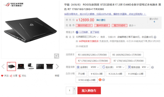 华硕ROG S7ZC京东商城购买链接:https://item.jd.com/22128006091.html 超强配置 让玩家无惧对手 对于大部分人而言,笔记本便携且不占地方,是居家或者旅行的良好配件。然而一旦用笔记本打游戏,普通笔记本性能的限制就展露无遗了。当大家开始酣战的时候玩家却由于卡顿而无法发挥实力,造成被对面单杀甚至无情嘲讽的局面。华硕ROG S7ZC的超强配置,选配AMD锐龙5 1600处理器,选配8GB内存以及4GB GDDR5独立显存的RX580独立显示芯片,带来高速的计算能力,让玩家无惧对手,突破阻碍、带领团队走向胜利的曙光。ROG S7ZC还支持人性化拓展,最高可扩展至32GB的内存,保证系统的稳定性与流畅度,在不同游戏中随时无缝切换,在千军万马中流畅取下敌人首级,满足玩家多层次的胜利需求。而本身北极星架构的Radeon RX580,支持4k精细画质输出,更支持FreeSync技术,能够完美消除画面撕裂和卡顿,让玩家看的更清晰,敌人更加无处可藏!