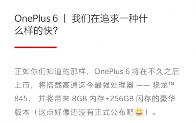 进入 2018 年,面对挑剔的消费者与市场,手机行业需要更有说服力的创新和更关注用户体验的理念。一加手机提出“无负担”,是基于对用户需求的深入探索,同时不断地提升对一加手机产品的极致要求。很多用户用了一加手机后,都忍不住赞叹它的轻快和流畅,不知道今年一加6上市之后,用户又会有怎样更加惊喜的体验评价?