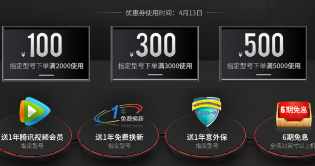 4月13日当天,用户凡购买飞利浦机型即可享用“满2000减100元、满3000减300元、满5000减500元(指定型号当日使用)”福利,还有指定型号送1年视频会员、指定型号送1年意外保等实在好服务,实惠省钱才是硬道理!
