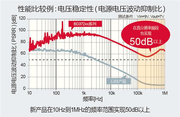 “BD372xx 系列”是全球首款高音质音响用电源IC,融合ROHM多年积累的电源IC模拟设计技术与独创的音质设计技术优势开发而成。产品采用新开发的高速响应误差放大电路和低噪声结构,并通过听感评估,优化了开发与生产过程中影响音质的参数,以实现最佳音质。音响设备的电源要具备的所有重要特性(电压稳定性,噪声级别,正负电源的对称性)均达到了业界顶级性能。与以往搭载在音响设备中的电源IC相比,可提供极其清洁的电力,在高音质需求日益高涨的音响市场上,可通过电源线提高诸如声像(音源的位置,距离感)和分辨率(现场感和深度感)等所有音响设备要求的音质。