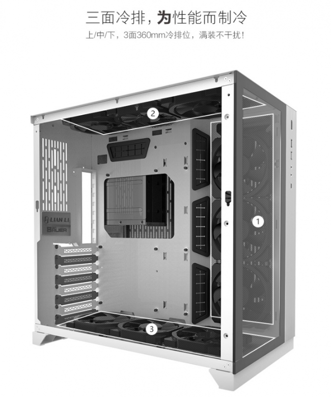 而整款产品最大的亮点无疑是能同时安装三个360冷排!是同时噢!可以说为玩家自定义散热提供了无限可能!绝对是机箱中的散热神器!