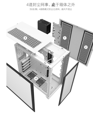 而最令人头疼的机箱积灰问题,包豪斯-O11也给出了完美的解决方案!顶/底/侧,4道隐藏式防尘过滤网为整个箱体提供了360°无死角的全方位保护,免除用户日久积灰的困扰!