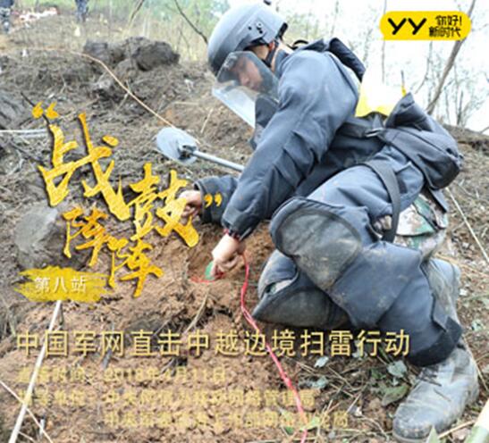 4月11日上午9点,YY平台同步直播由中央网信办移动网络管理局、中央军委政治工作部网络舆论局协同央视网推出的“战鼓阵阵”系列节目第八站。本次YY直播走进中越边境的法卡山扫雷现场,直击中国版“拆弹部队”征服那场并不久远的战争残留下来的生死雷场!共有43万+的网友跟随YY直播的镜头一起在线经历了这一惊心动魄的时刻。