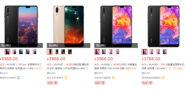 这样一款热销的机型,也被嗅觉敏锐的黄牛们盯上了,目前在第三方的电商平台,该机普遍存在加价500-1000元的现象,比如最热门的华为P20 Pro手机,其标准版6G+64G在第三方平台售价是5988元,而高配版6G+128G售价达到了6488元,相比官方价格的4988元和5488元都加价了1000元,看来好机不愁卖,粉丝对于高端机真是热情高涨呀。