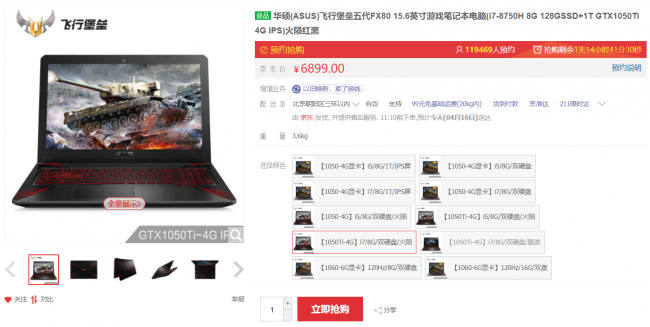 华硕飞行堡垒FX80京东商城活动PC链接:https://sale.jd.com/act/BwH7FSalp8Y.html