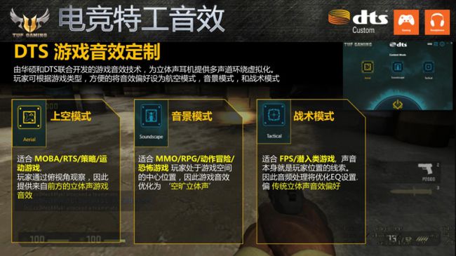 借助这款主板所拥有的一系列实用的电竞增效技术,玩家们的游戏体验更能够显著提升。在电竞音效方面,这款主板拥有DTS游戏音效定制、音频防护线、日系音频电容和左右声道分层隔离设计,提供身临其境的游戏体验。特别值得一提的是DTS游戏音效定制技术,此为华硕携手DTS联合专为玩家量身打造,可为立体声耳机提供多声道环绕虚拟化。该功能让玩家可根据游戏类型,方便地将音效偏好设为航空模式(适合MOBA/RTS/策略/运动游戏),音景模式(适合 MMO/RPG/动作冒险/恐怖游戏)和战术模式(适合 FPS/潜入类游戏),从而带给玩家更逼真、更震撼的游戏音效或更精准的声音定位。