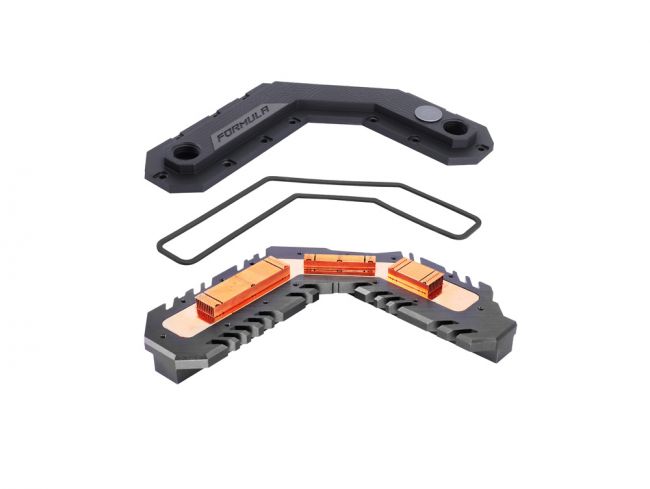 ROG M10F主板拥有超豪华的ROG装甲,强韧的ABS顶盖以及坚固的钢制背板,可提供出色的防护能力以及散热能力。特别是,该主板特别拥有独家的CrossChill EK II混合散热模块,由ROG与EKWB携手打造,兼具风冷和水冷混合散热,经改良加大后的散热鳍片可直线提升散热效果,内部水路设计精益求精,较于风冷,采用水冷散热时更可将MOSFET温度压制在23˚C以下。精妙且不失纤薄的新型散热鳍片可使温度较前代降低多达4˚C,可实现更高效、更安静的散热效果。在水冷设计方面,这款主板还拥有无懈可击的水冷控制区,可监测水冷散热器的运行状态,自行调节,避免不断调试安装的困扰。