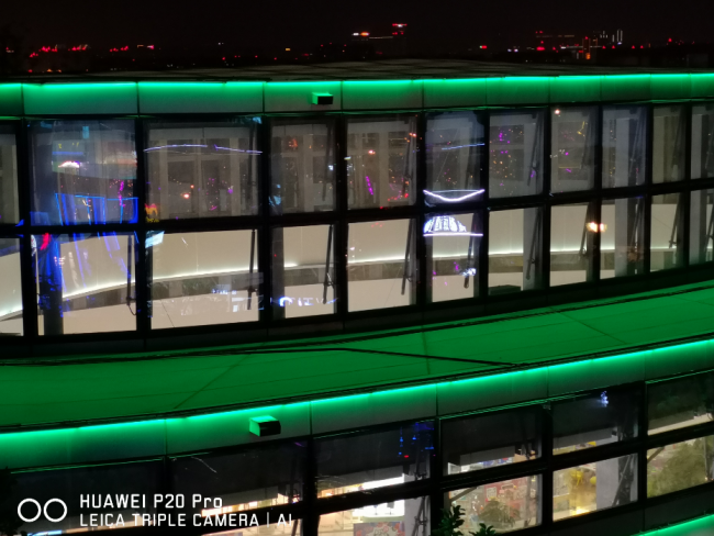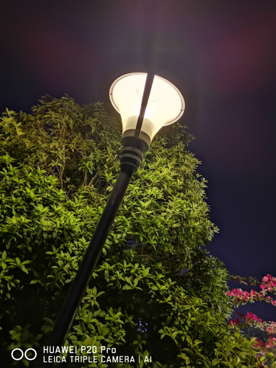 如上样张,不管是昏暗的楼房还是耀眼的灯管和近处的树叶,虽然是夜晚,但是拍出的样张依然非常的明亮,即使放大图片也没有出现不清晰和噪点,可见华为P20 Pro对光线的控制十分优秀。