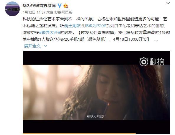 4月12日,华为在上海举办了P20系列的中国区发布会。著名导演、艺术家王潮歌分享了她全程用华为P20 Pro作为工具拍摄的艺术短片,为观众展示了如何用华为P20系列自由记录和表达艺术的创想、绽放眼界大开的时刻。