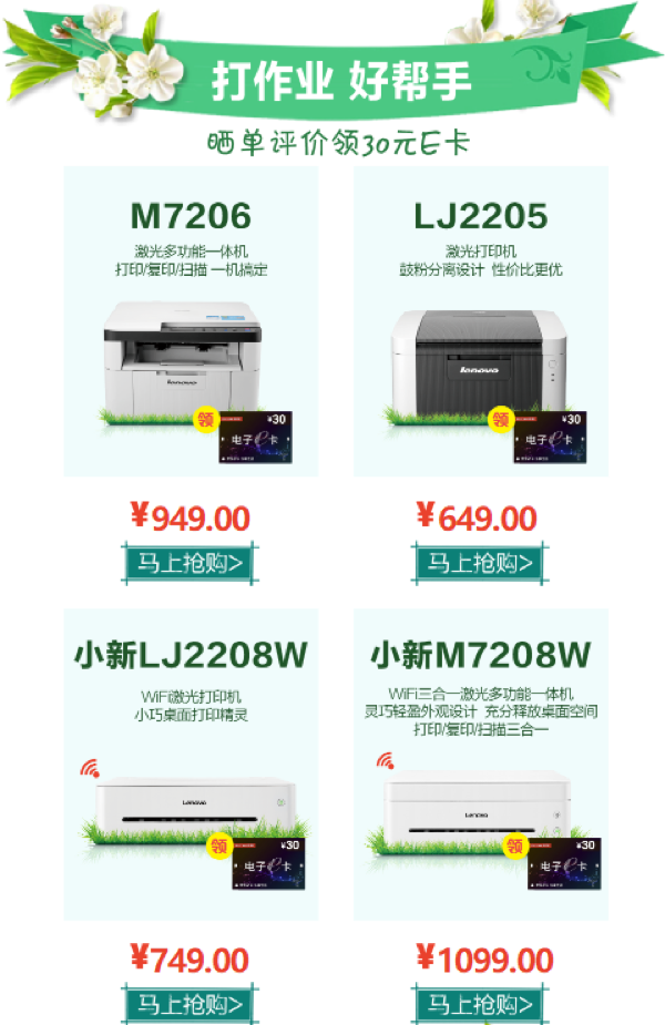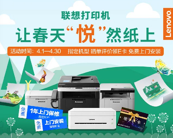 更新办公装备,升级工作状态,解锁办公状态新姿势,就从联想打印机春日钜惠开始,让春天一起“悦”然纸上,