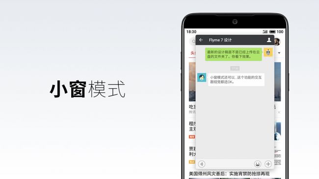 Flyme 7上还新增了一些创新交互功能,以提升用户的操作效率。比如之前在游戏模式中出现的小窗模式消息提醒,这一次将覆盖更多生活场景,大幅度减轻了APP频繁跳转的心理负担,并且在全屏模式下,QQ、微信或TIM消息还会以轻量级的形式呈现,做到最小程度的打扰。